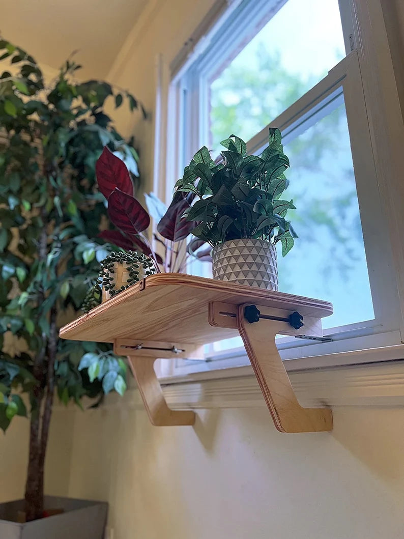 Oak Window Plant Shelf, Adjustable, No Tools Install (22x10, 21x15)